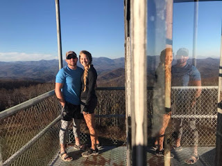 We first read about Glassy Mountain on the Wander North Georgia Blog. You should definitely check out their site if you are anywhere in the North Georgia area. You can also read their post for better fetails on how to find the hike and tips about it. One thing we did learn that has changed since their post is that you are allowed to drive your car right up to the bottom of the tower as long as the gate is open. Anyways, the views are great (if you can get over the knee knocking climb up the tower). Cindy made it up to the top, though, so you should have no problem. They say at night, that you can see Clemson from the top of the tower. Like I said – pretty solid views.